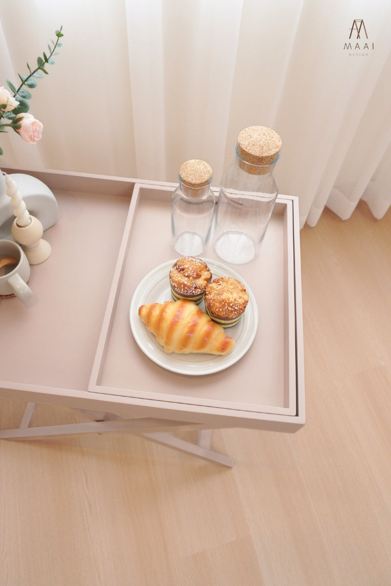โต๊ะวางถาดพร้อมขาตั้ง 1 ชุด มี ขาตั้งพับได้ ถาด 2 ขนาด